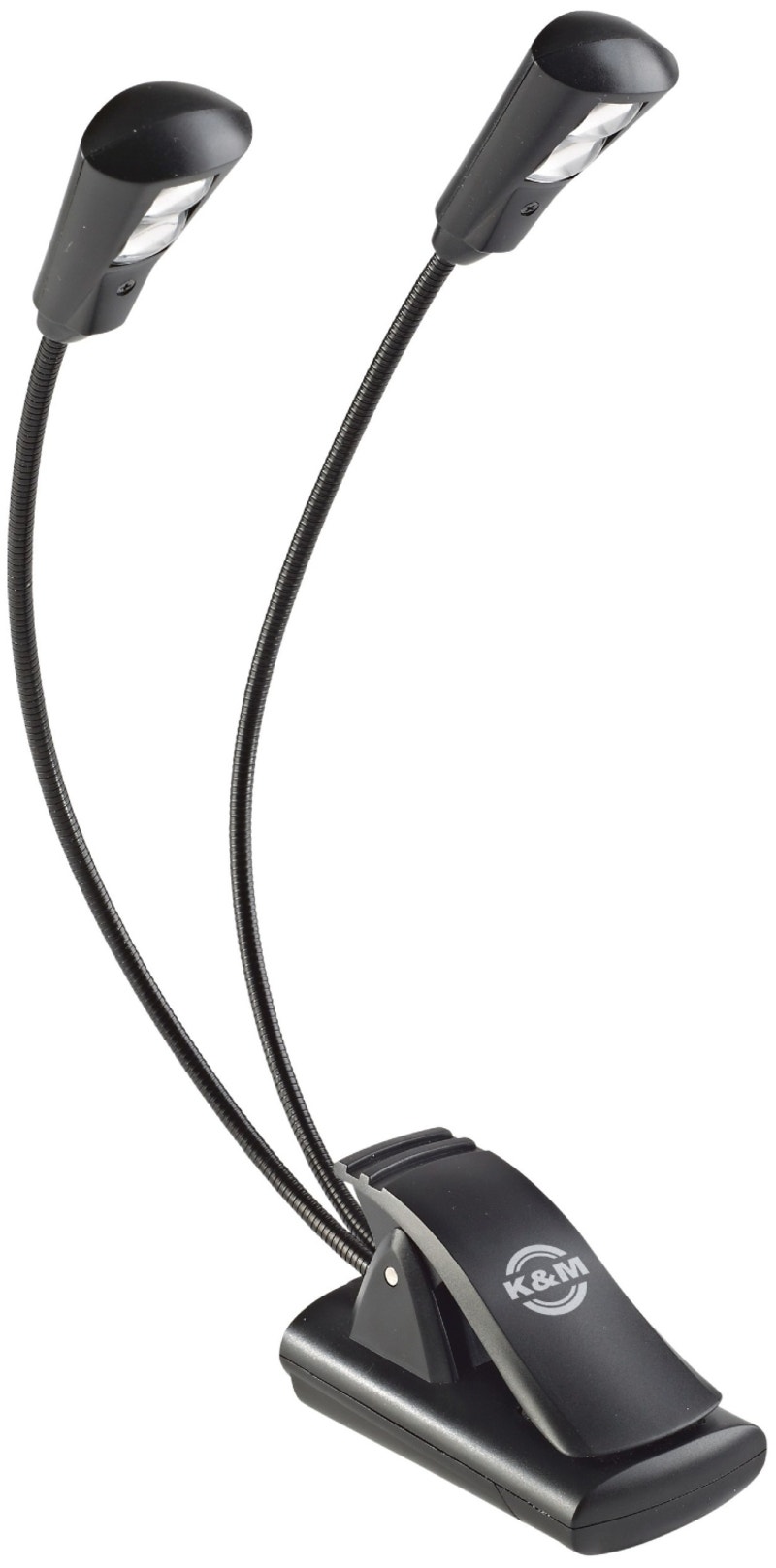 Monipuolinen nuottivalaisin, jossa kahden joutsenkaulan päässä on tehokkaat kahden LEDin valaisimet. Säädettävä kirkkaustaso ja joutsenkaula takaavat juuri sopivan valon vaativissakin olosuhteissa ja leveä leukakiinnike (jopa 25 mm) kiinnittyy tukevasti nuottitelineisiin, pöytälevyihin jne. Myyntipakkauksessa on mukana kolme paristoa (1,5 V AAA), joiden käyttöaika on jopa 20 tuntia. Voidaan käyttää myös verkkovirtalähteellä (ei sisälly pakkaukseen).